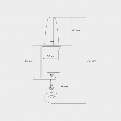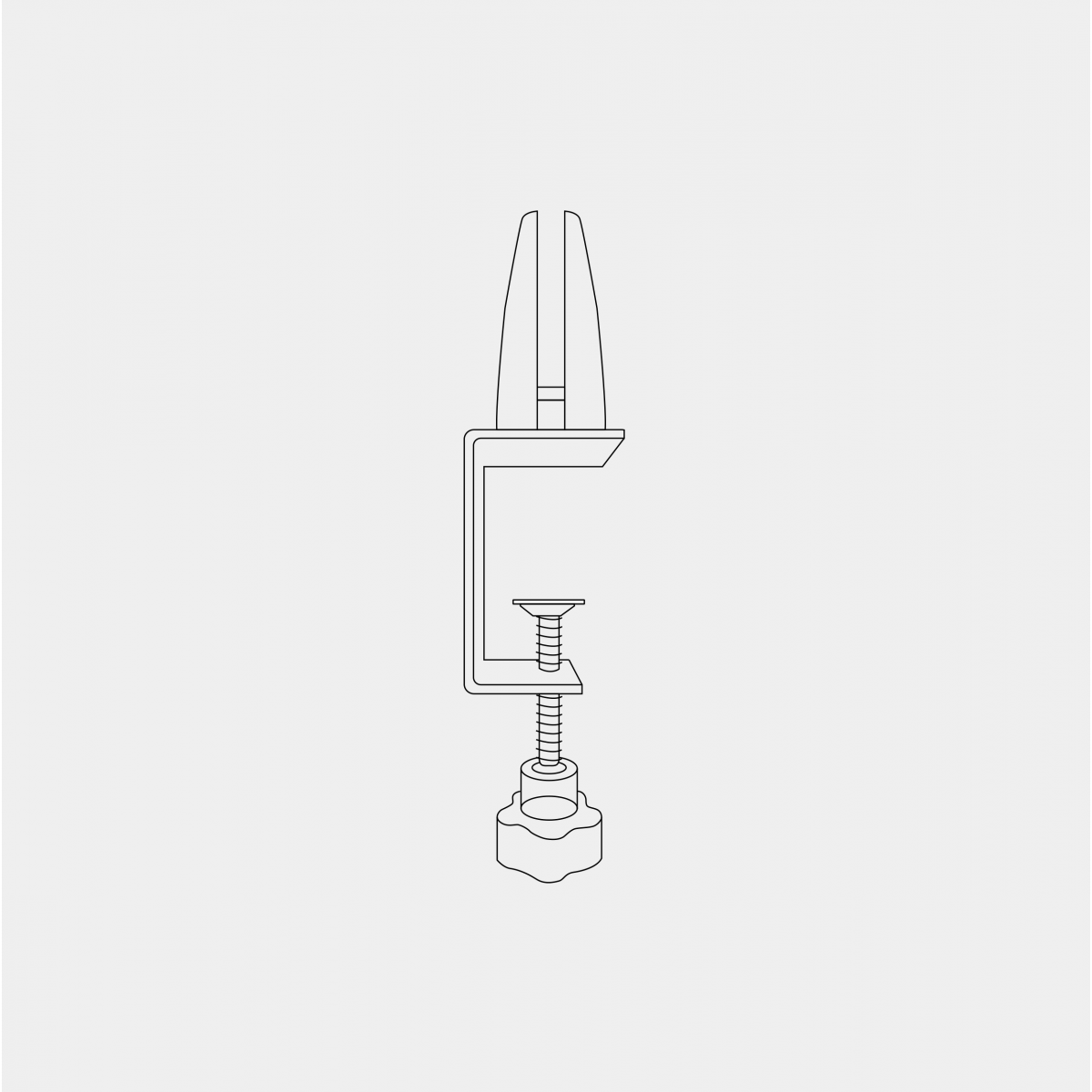 Contiene todos los elementos necesarios para anclar con tornillería a la superficie de la mesa o al canto de la misma a través de un tornillo regulable que se puede añadir a la pinza para la sujeción del panel.