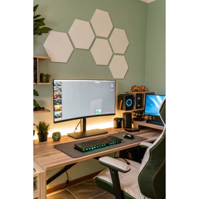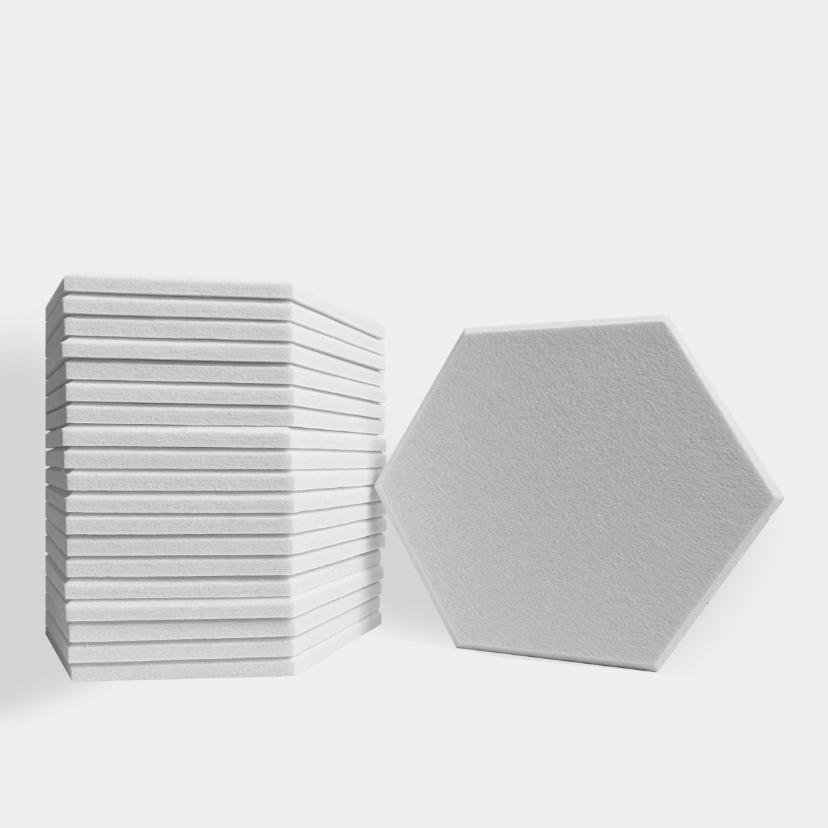 Kit de 20 paneles hexagonales acústicos decorativos usados para acondicionar acústicamente y para reducir la reverberación de las salas. Este panel acústico decorativo sirve para lugares como salas de ensayo, comedores, oficinas y muchos más. Estos paneles fonoabsorbentes se pueden instalar tanto en paredes como en techos con el pegamento EliGlue Forte.